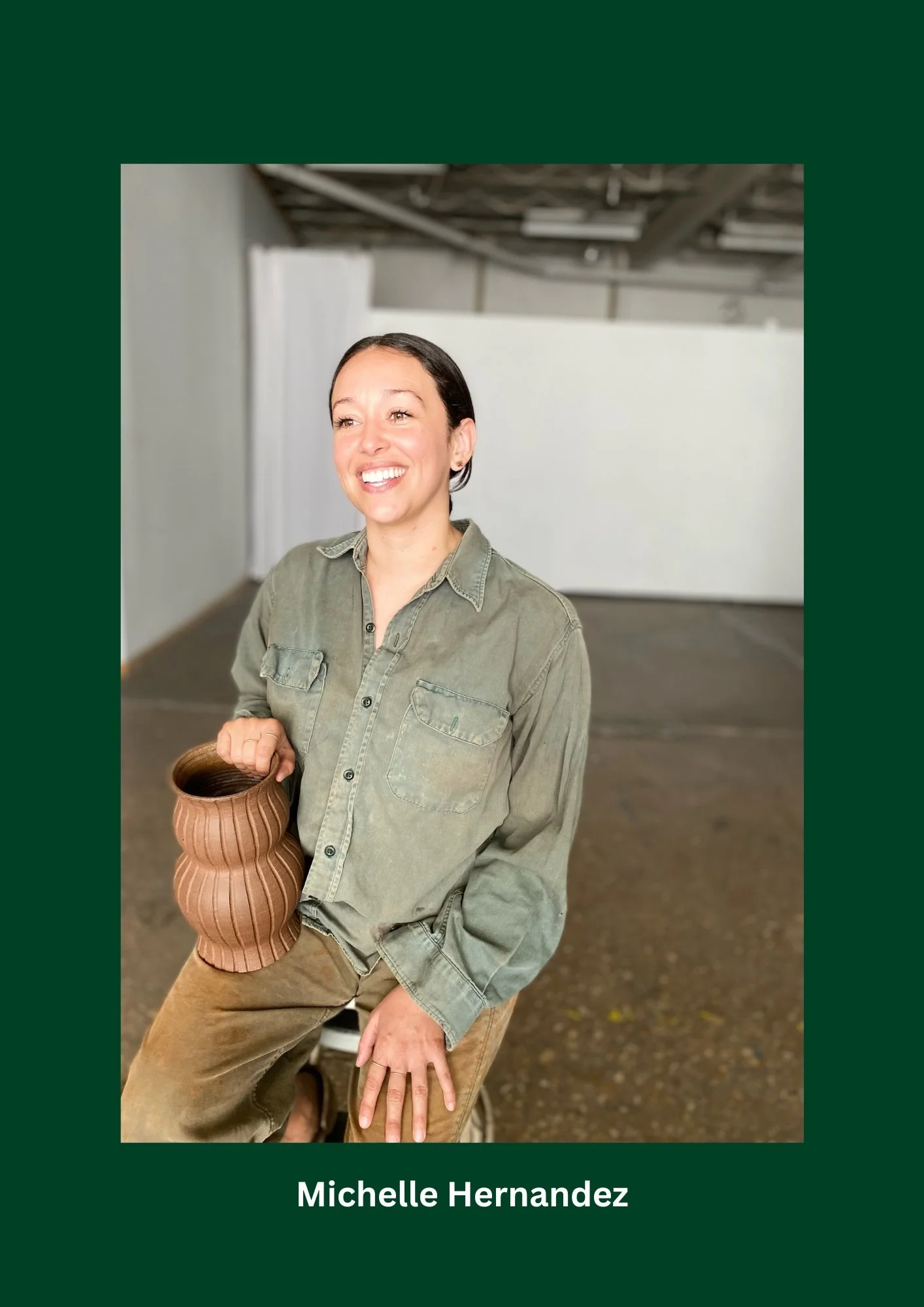 Michelle Hernandez is a ceramic artist and teacher who strives to make creative expression, art and clay accessible for her community and herself. She has over 16 years experience working with the medium and learning from devoted ceramic professionals. Michelle teaches handbuilding and wheel classes in order to share all the clay lessons she has inherited and intuited along this journey.